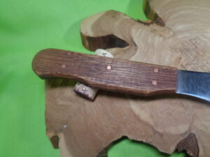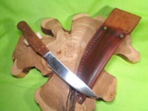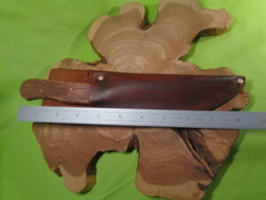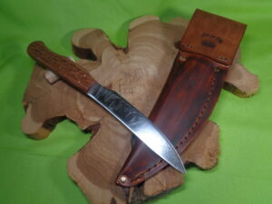 This knife was remade from an USA-made LF&C knife manufactured in the 1890s-1910s. The blade is high carbon steel, forged and tempered, and was reshaped while the handle and sheath are all custom-made in house.